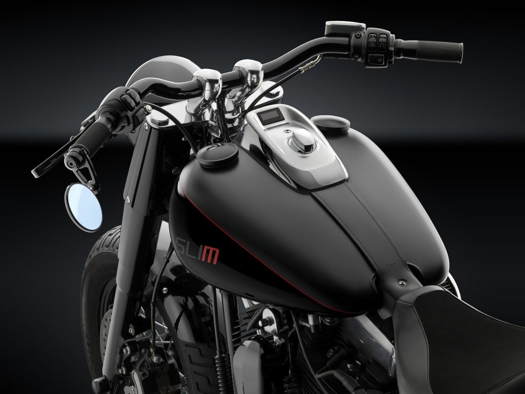 Harley-Davidson® Softail Slim is the first Rizoma special, on Harley Base, forged in the aluminum atelier.